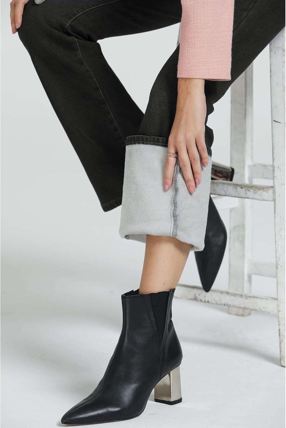 • Inseam of the women jeans: 31.5″. Length: Size X-Small-42.1″, Size Small-42.5″, Medium-42.9″, Large-43.3″, X-Large-43.7″; this pair of jeans has fleece lining which provides insulation and helps to keep you warm during colder weather or in cooler environments