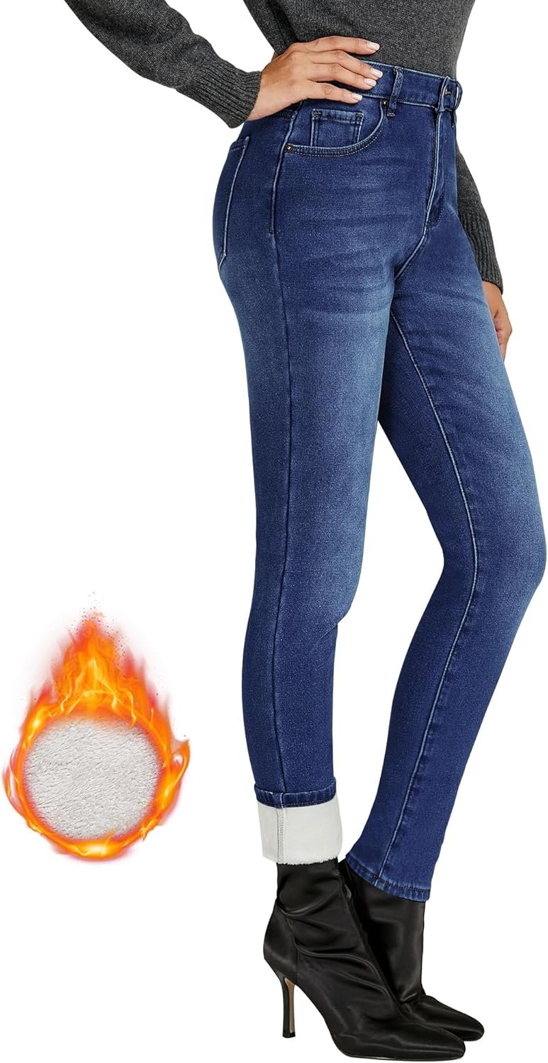Fleece Lined Jeans for Women High Waisted Skinny Winter Warm Slim Fit Thermal Jean Pants Stretchy Denim Jeggings
