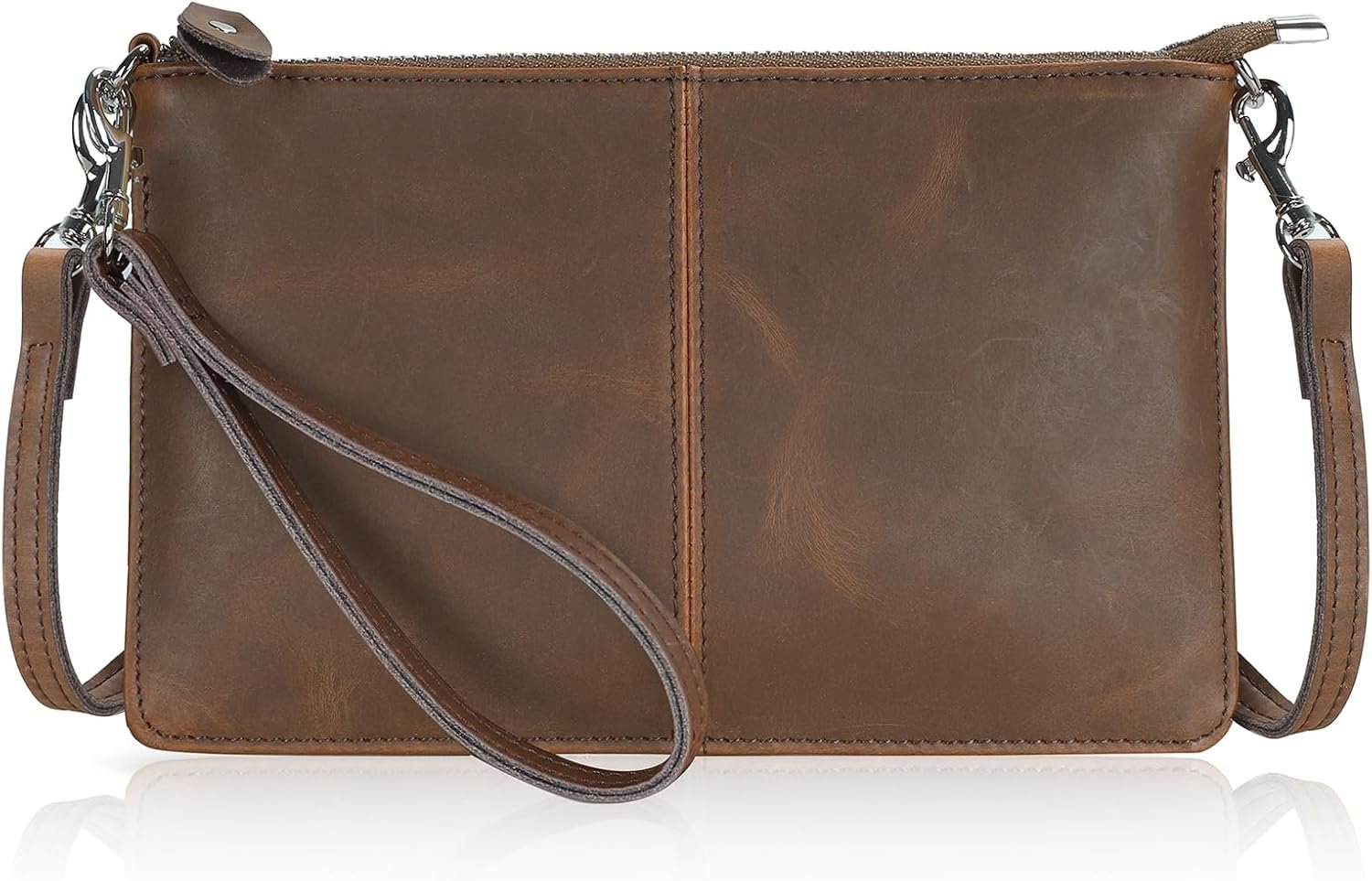 - Crafted in top quality Crazy Horse leather, this vintage bag can be carried as a clutch without the strap, a wristlet or worn crossbody making it perfect for various occasions. The RFID Blocking Card Slots providing added security against digital pickpocketing. Note: Each Crazy Horse leather bag will change color with rub and scratch