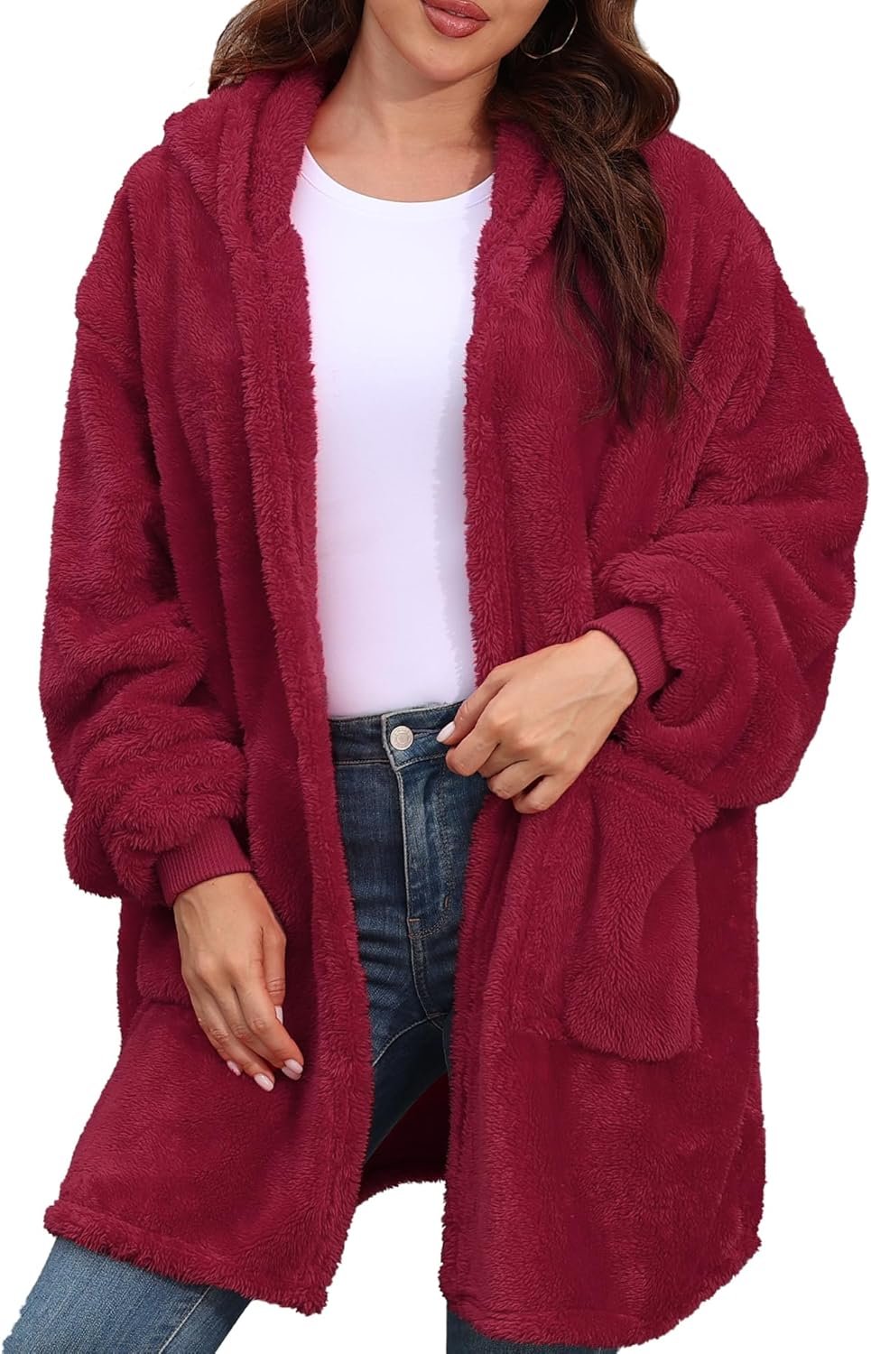 • 【Cozy Construction】: This oversized, long-sleeve hooded cardigan is crafted from a soft, fuzzy fleece fabric, ideal gifts for women and men. It offers a relaxed, loose fit with an open front clothes for easy wear, providing exceptional warmth and comfort, perfect for lounging at home or wearing outdoors during fall and winter