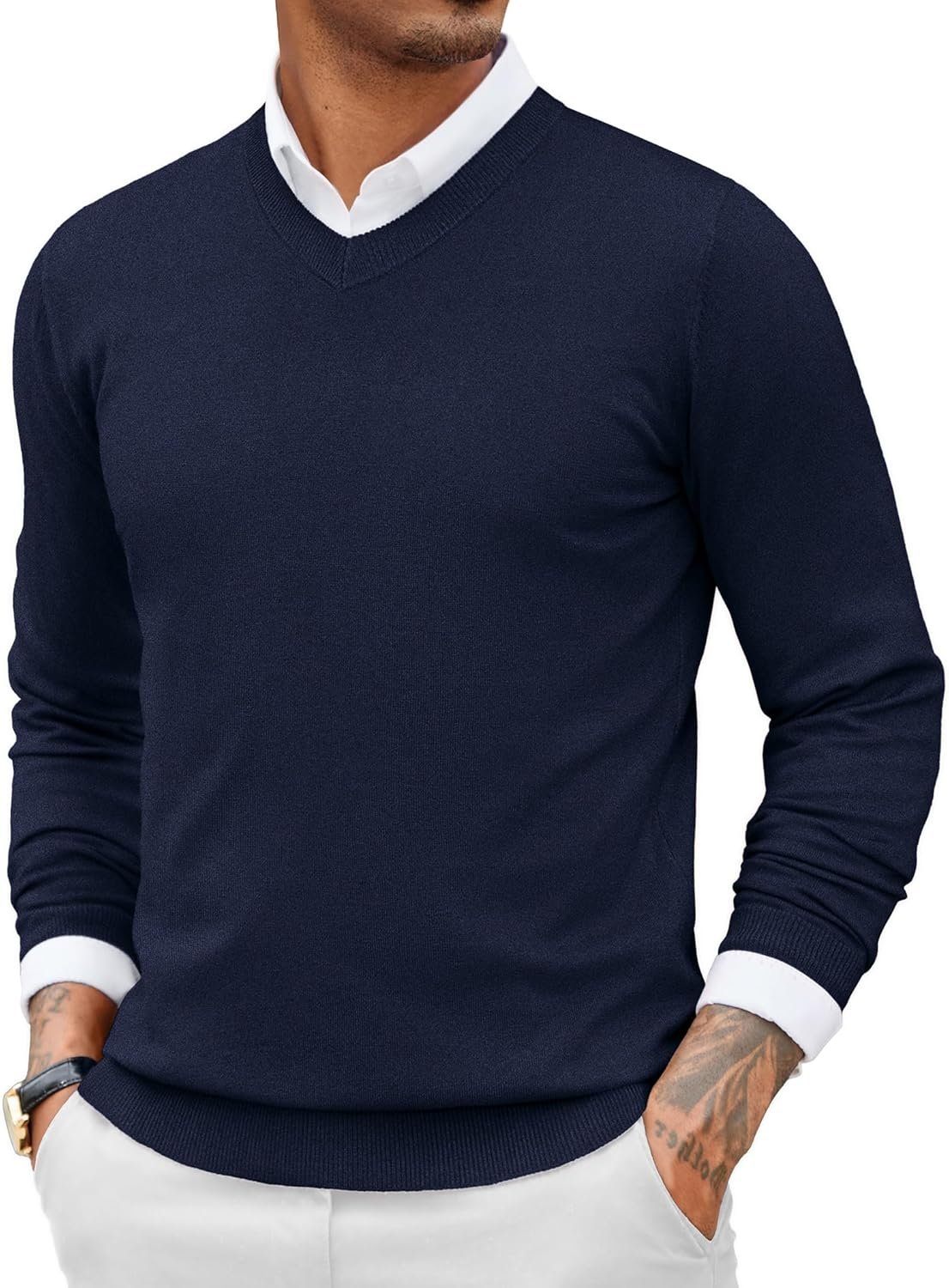 - Classic Looking — With the V neck, long sleeve, solid color, ribbed collar, cuffs and hemline, this men’s knitted pullover is slim fit and never outdated, creating you modern and classic looking in you daily life.