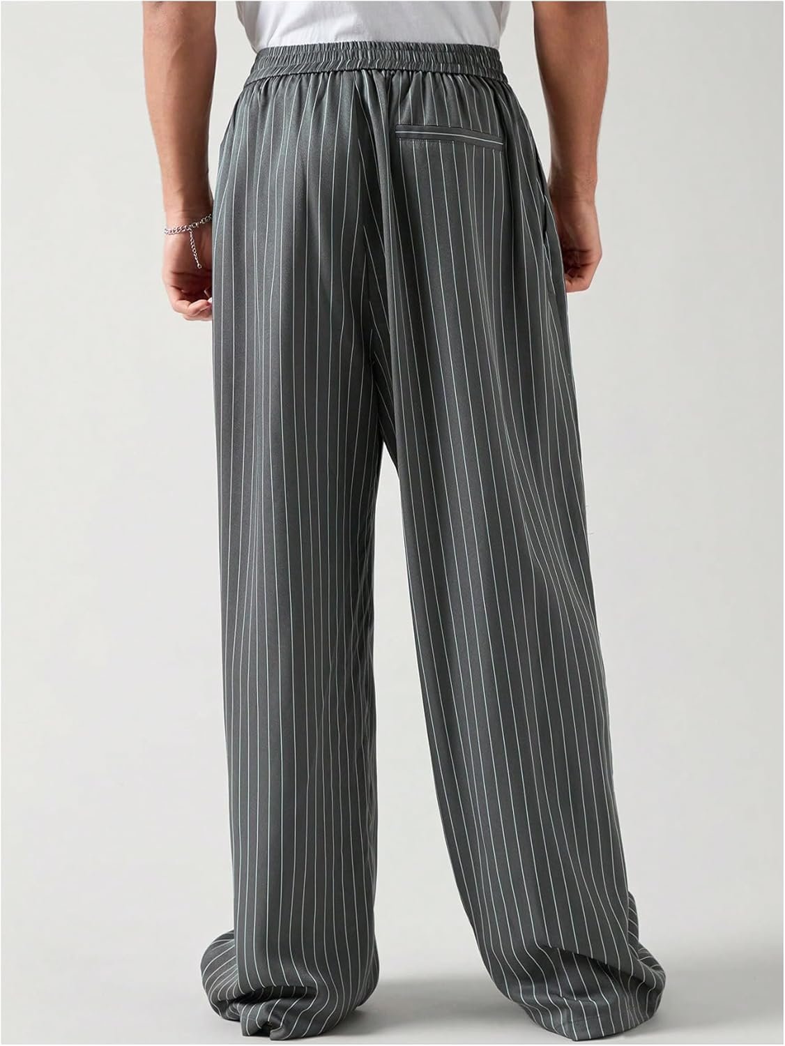 - Men’s pleated pants feature a timeless design with striped print, offering a formal yet fashionable look that can be dressed up or down