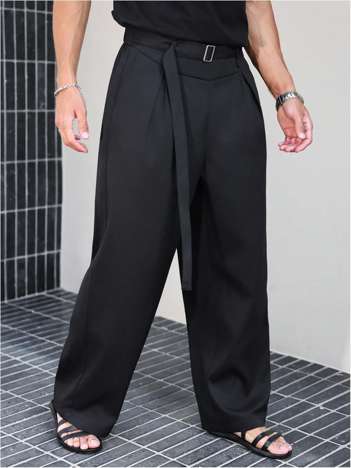 - Fashion dress pants for men feature a tailored fit with a smooth front and a belted waistband, offering a sleek and professional appearance that is both timeless and versatile