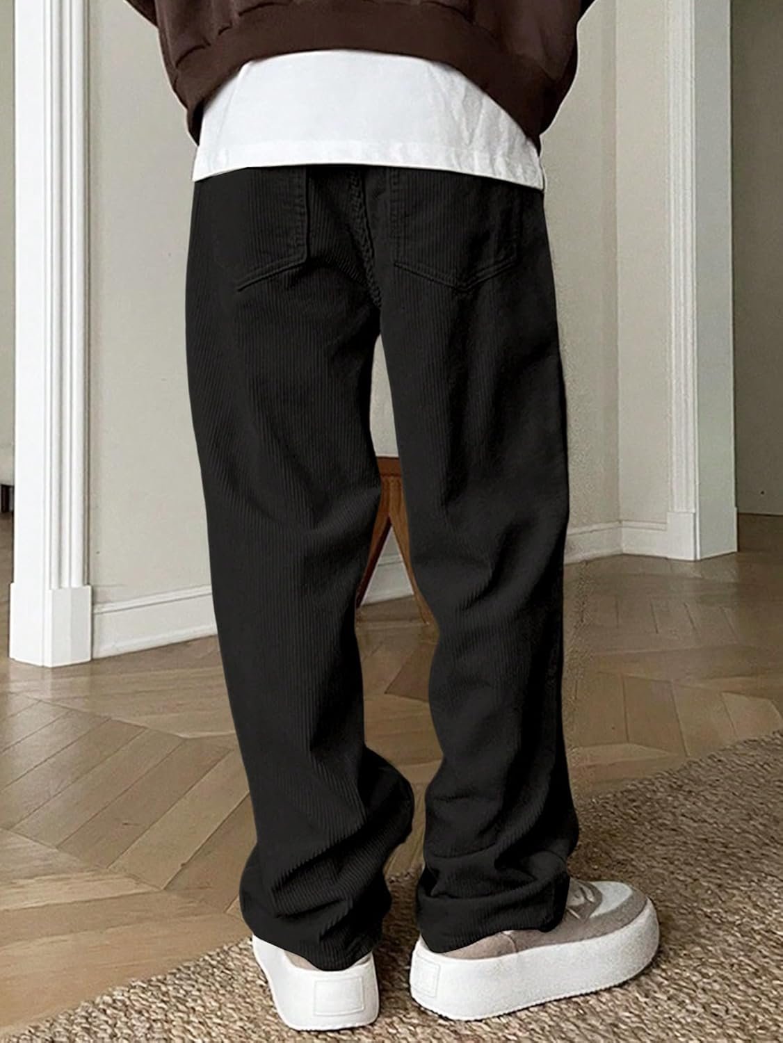 Men’s Casual Drawstring Elastic Waist Wide Leg Pants Long Trousers with Pockets