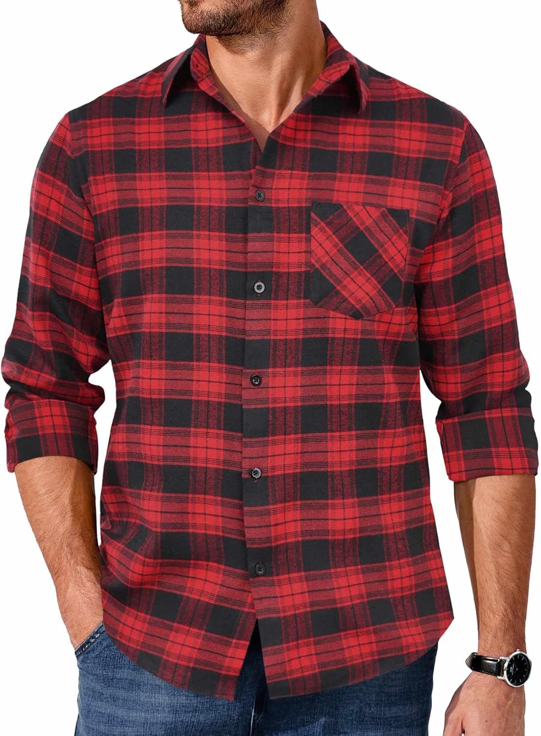 • 【Timeless Design】This men plaid flannel shirt features a classic buffalo plaid pattern, button closure, long sleeves, and a chest pocket. Available in multiple colors for a stylish look.