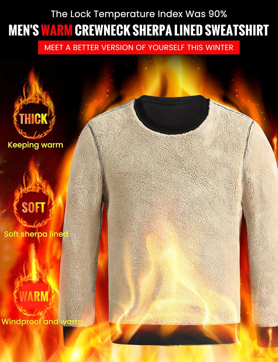 - This sherpa crewneck men is made of fleece material, soft, comfort, warm-keeping and durability in cold weather