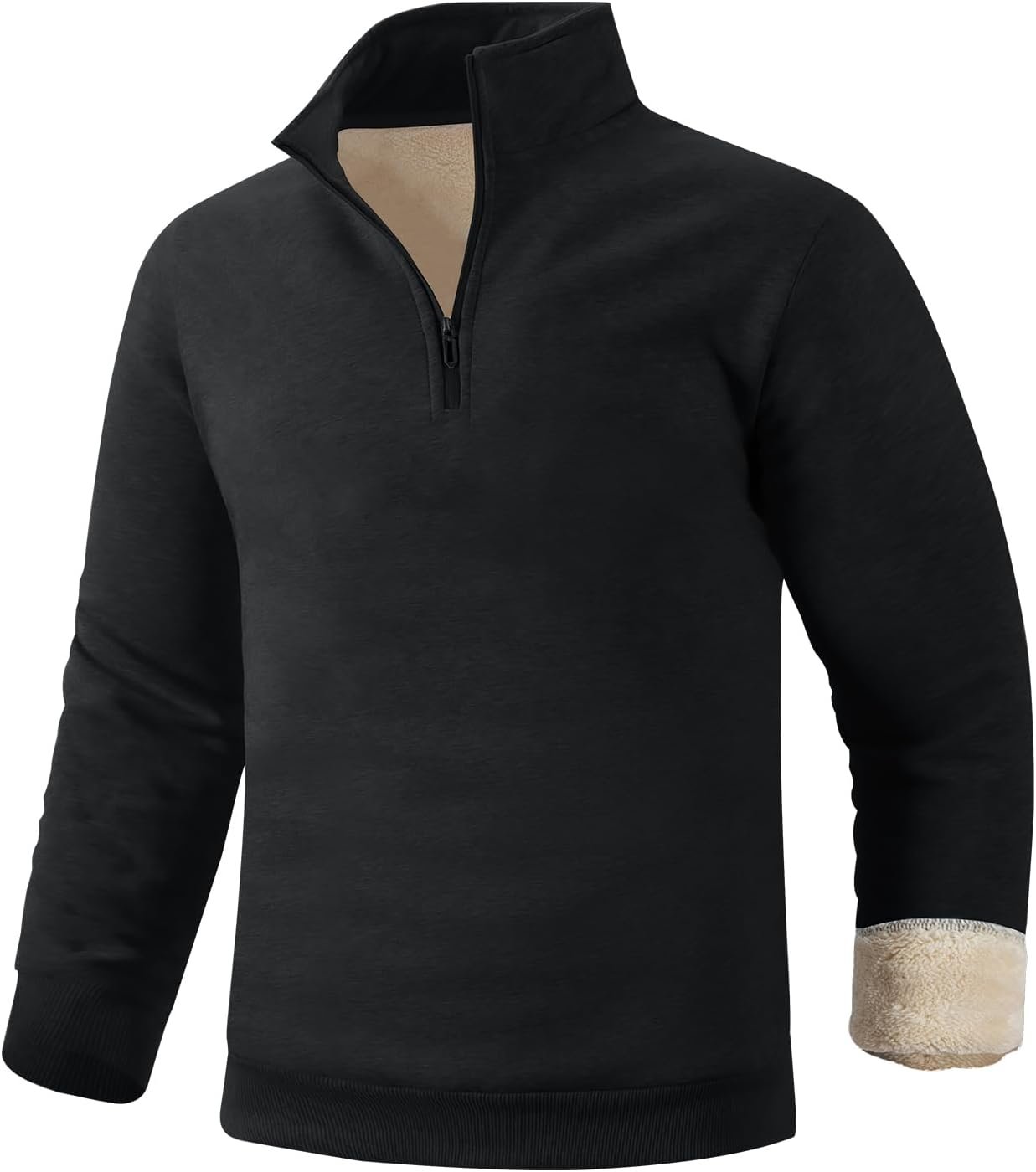 Men’s Quarter Zip Sweatshirts Winter Warm Sherpa Fleece Lined Pullover Sweatshirts