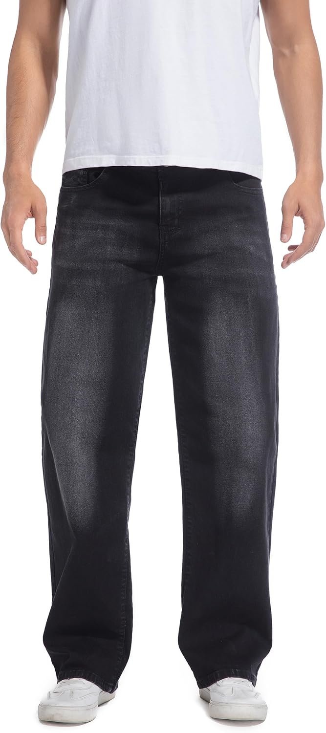 Men’s Wide-Leg Baggy Flex Jeans Relaxed Loose Fit Long Denim Pants