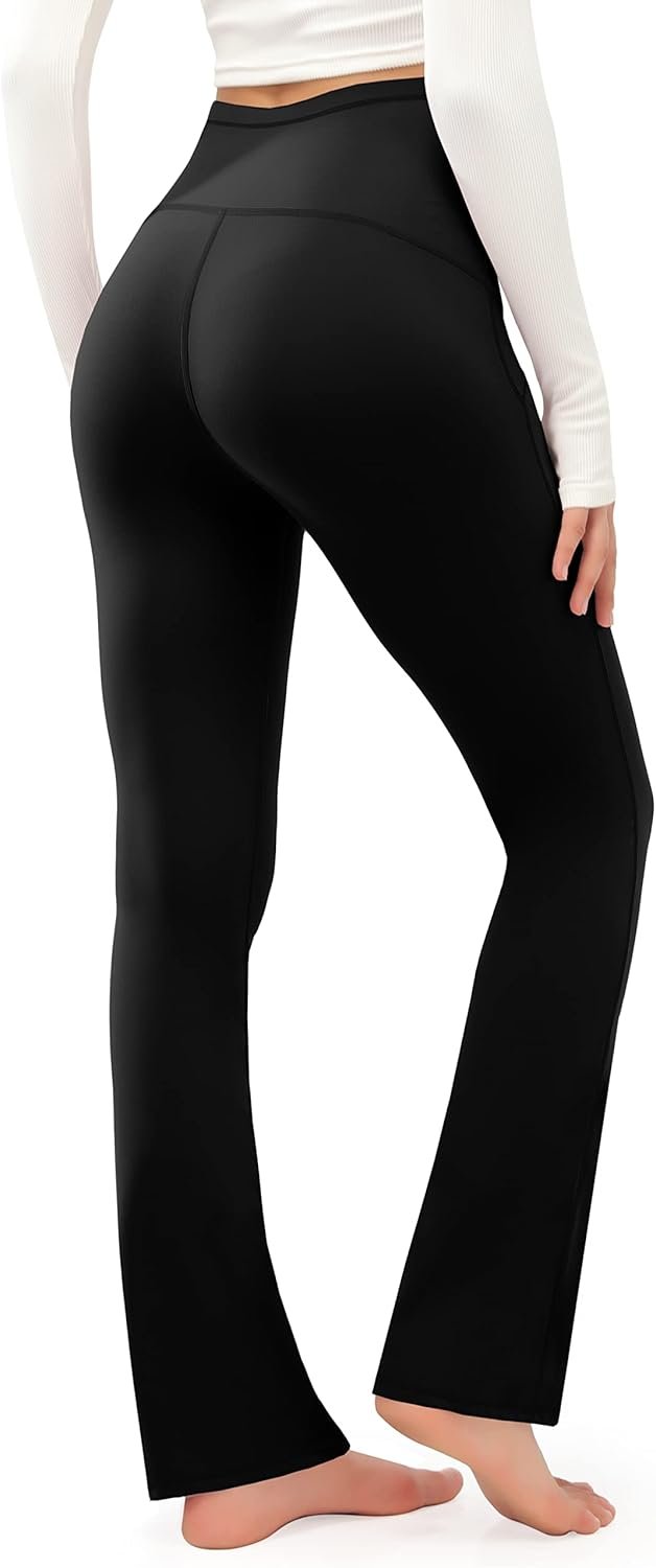 - Side Pockets & Bootcut Style: 2 side pockets for cell phones, credit cards, or valuables. Bootcut design, snug fit through hip and thigh, with more ease around the calf