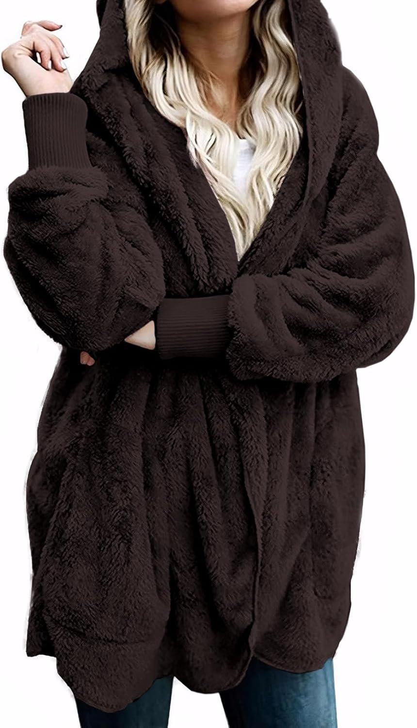 - Features 2:Two big pockets on both side of the cardigan to keep your hands warm in autumn or winter,NO zipper or button closure,big and thick hood to keep your head and ears warm when you are at outdoors,very cozy,soft and warm winter cardigans for women and girls.Fuzzy fleece long sleeve cardigan outwear,fleece cardigan with pockets,sherpa jacket,fleece hooded cardigan,winter cardigans for women,furry jackets,fluffy coats for women,bear coats,fuzzy jacket women