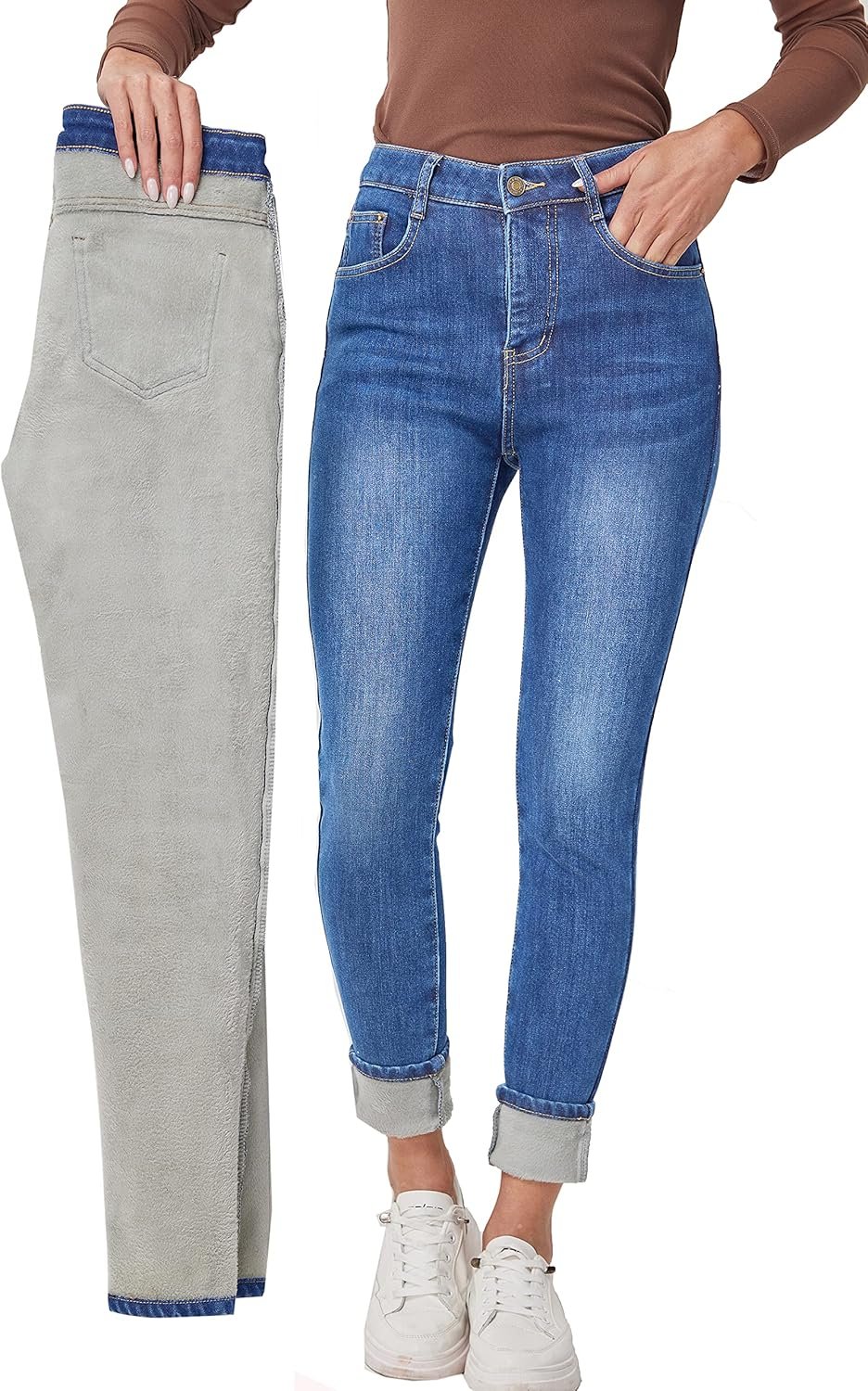- Flannel Lined Jean Fleece Lined Jeans for Women,inside fluffy velvety soft comfy lining for cold spring, fall and winter, thick but not bulky skinny simple with elegant denim pants