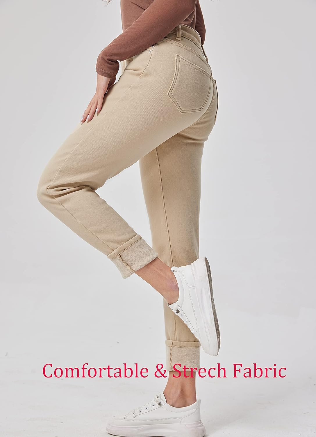 Women’s Fleece Lined Jeans Winter Flannel Lined Jeans Thermal Denim Warm Jeans