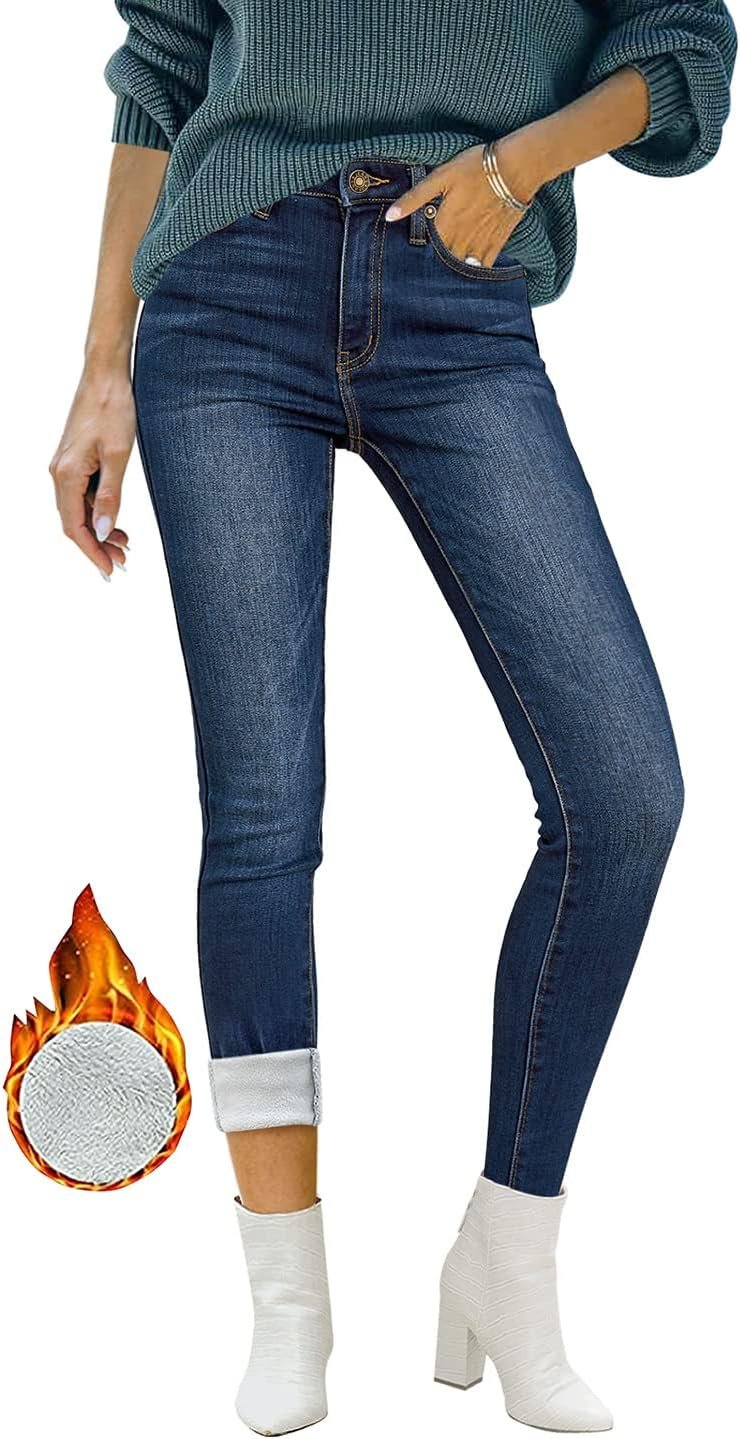 Women’s Fleece Lined Jeans Winter Thermal Denim Jeggings Skinny High Waisted Stretch Warm Leggings