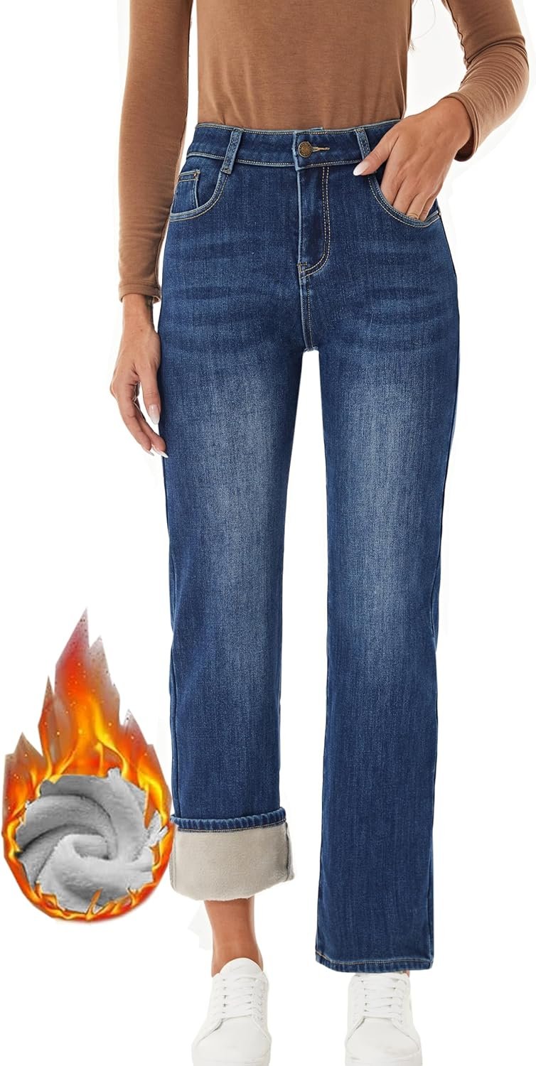 - Straight Leg Cut Jeans for Winter has more room relaxed fitting,allowing you to wear them with booties underneath without tucking them in ,Visit the Store to find varies cut fleece jeans.