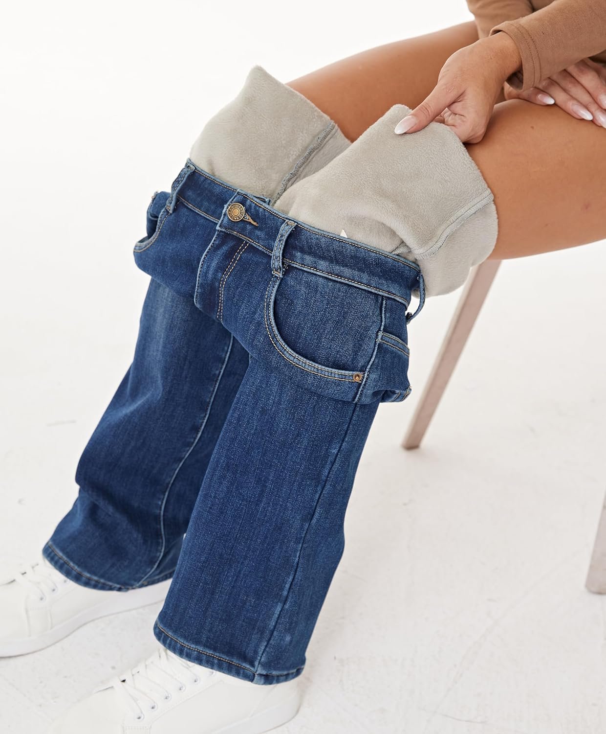 - Thermal Stretchy Fleece flannel sherpa polar plush looking lined jeans for women with real pockets