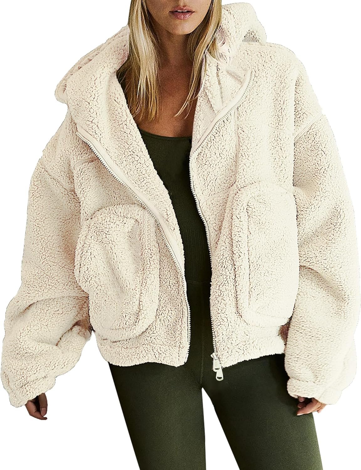 - FEATURES: Jackets for women with 2 side functional pockets, sherpa jacket women, fleece jacket women with hoodie, cropped fleece jacket, full zip up closure and elastic cuffs design makes you dress up and down easily, windproof, warm and fashionable.