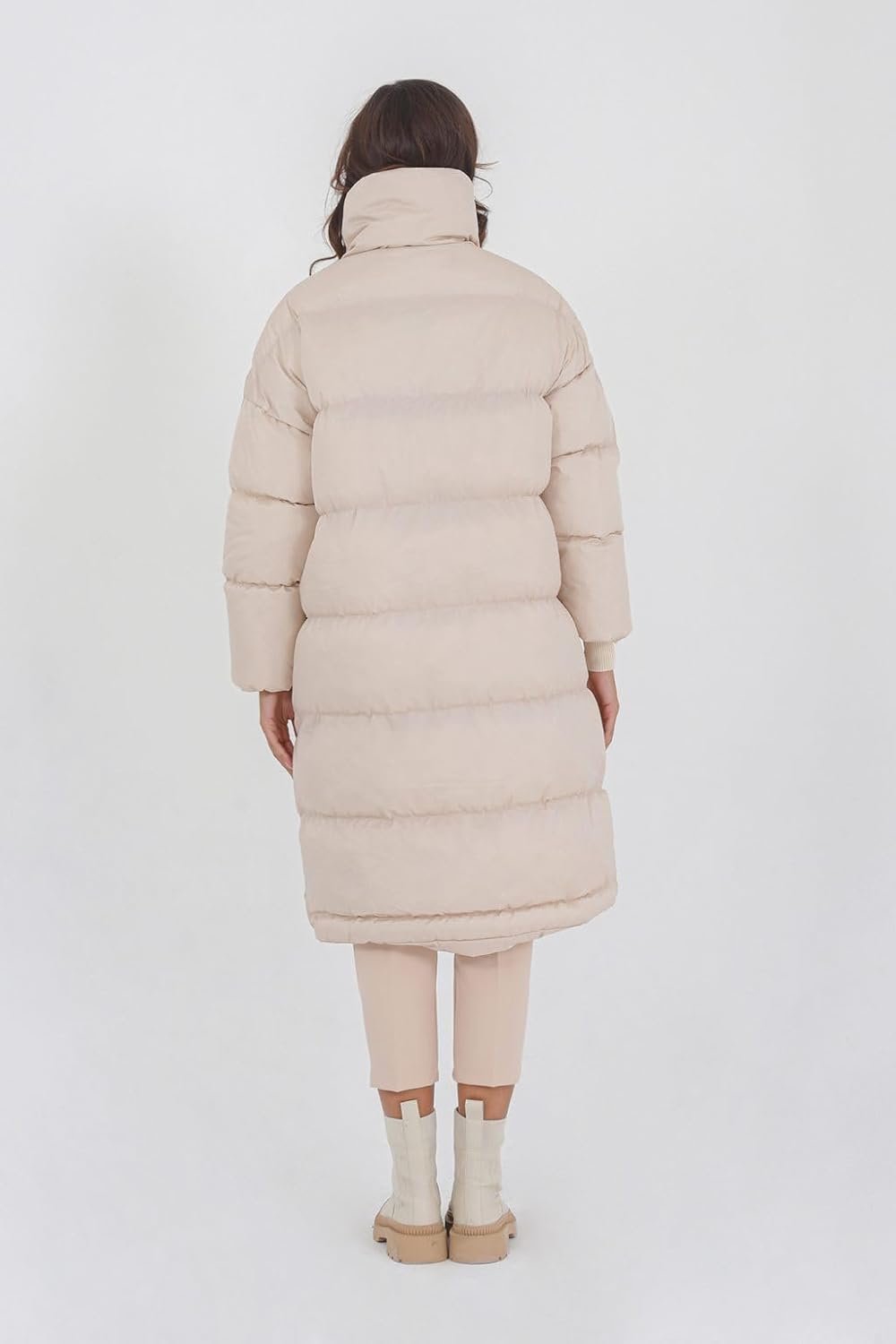 - Stay warm and stylish all winter with our Women’s Long Puffer Jacket featuring a stand collar and zip closure, perfect for facing the chilly weather.