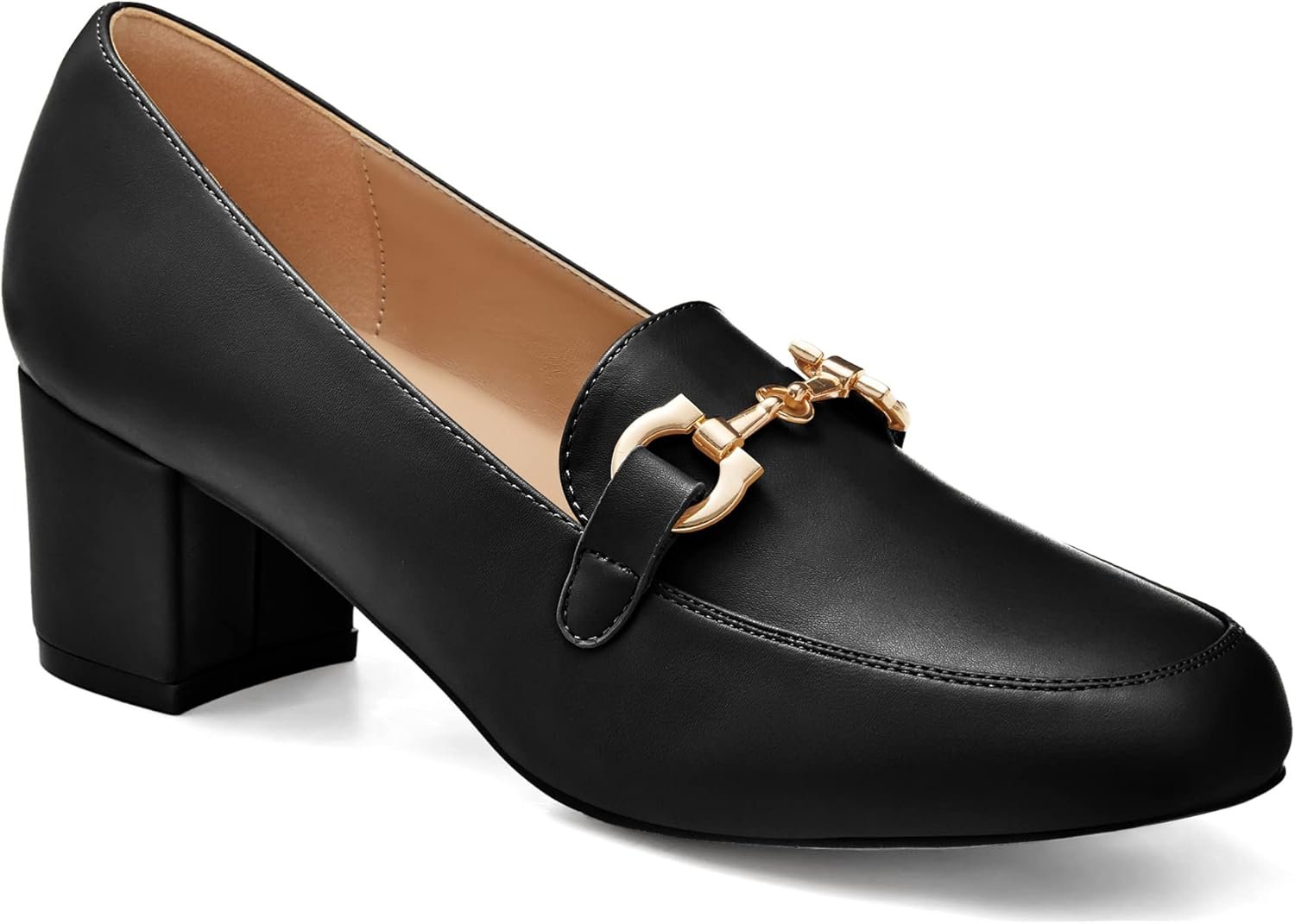 • FEATURE】: Women’s low heel pumps have classic square toe and chain decorate design, faux leather upper, offering a chic to your elegant look. 1.34 Inch chunky block heel, which give you height to your figure, lengthen your leg curve to make you look sexy.Be free to switch among casual and modern.