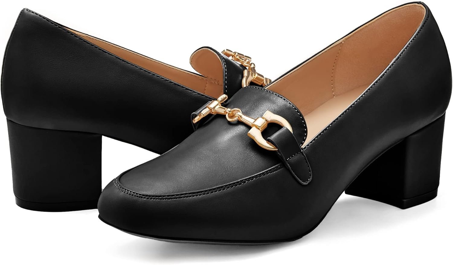 • 【COMFORT & QUALITY】: Our slip on chunky block heel dressy pumps with high quality faux leather upper, soft padded insole makes you won’t be tired when you walking all day with wearing it. Non-slip rubber sole. Breathable hole designed insole, keep your feet cool, and easy to slip on or off. Giving you a comfortable wearing experience.