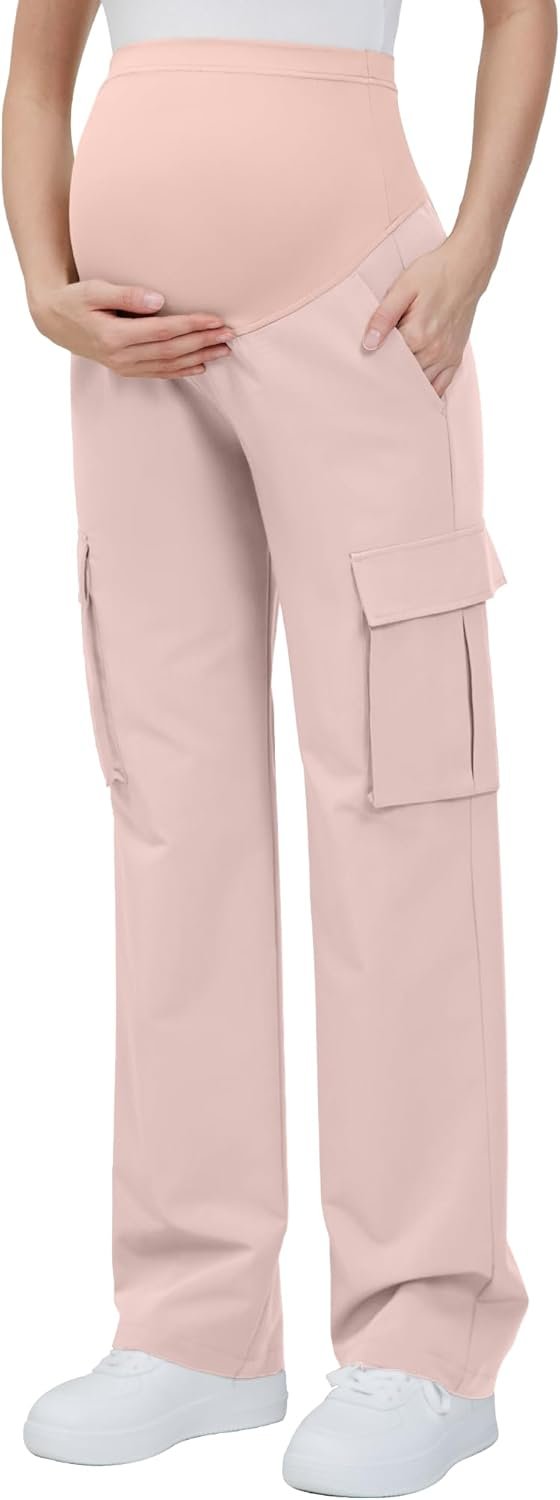Women’s Maternity Cargo Pants with Four Pockets Over The Belly Scrub Pants Pregnancy Clothes