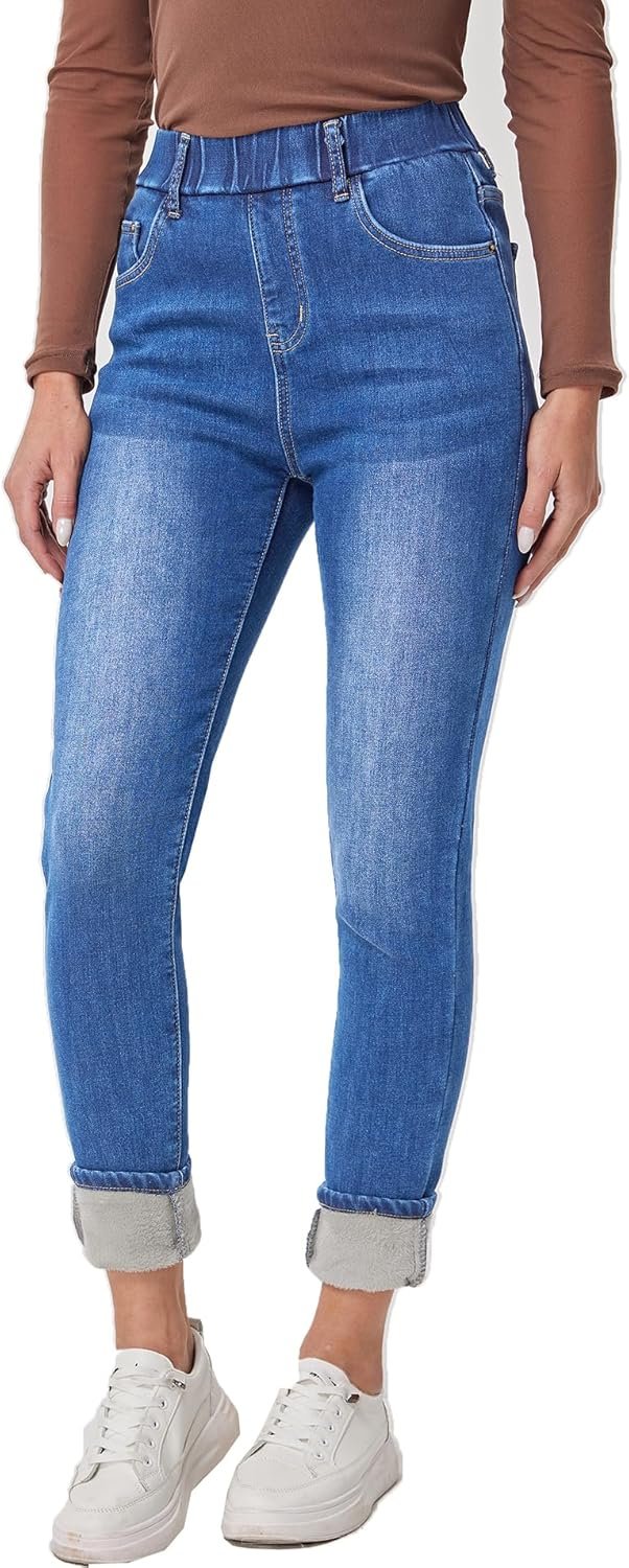 Women’s Winter Jeans High Waist Pull on Fleece Lined Thicken Elastic Waist Jeans