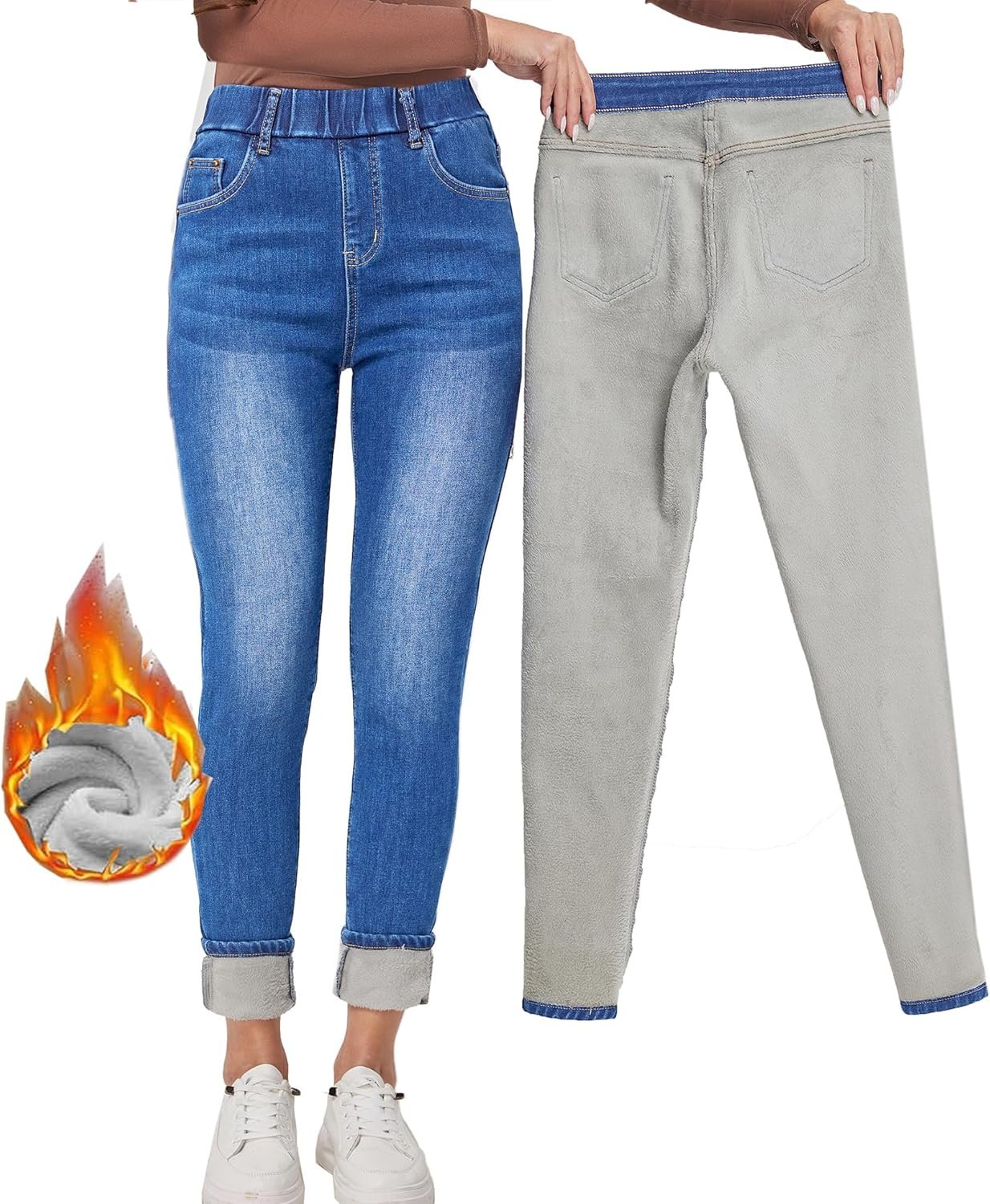 • Fleece Lined Jeans Jeggings Womens Denim Pants: female high rise jeans stretchy comfortable comfy jeans,Zip Fly with button closure.